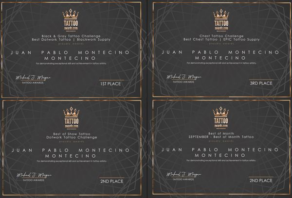 This award was at a tattoo convention held in my native country, Chile. I won first place in the pointillism category.